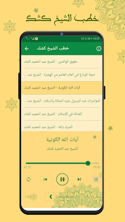 امكانية متابعة الاستماع الى خطب الشيخ عبد الحميد كشك كامله بدون نت من المكان الذي توقفت عنده اخر مرة.