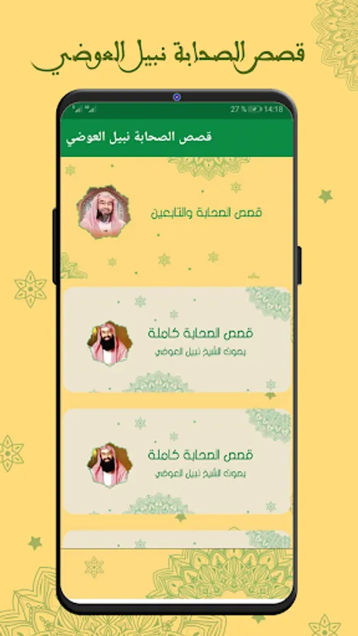 The application of the stories of the companions and followers without the net contains the most beautiful stories. If you are looking for the stories of the companions, Nabil Al-Awadi, without the net, all you have to do is download the program and start enjoying right away.