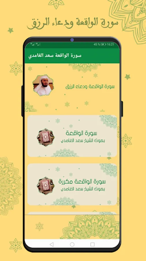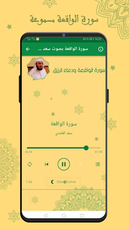 The possibility of listening to Surat Al-Waqi’ah audio without Net Saad Al-Ghamdi and working on the device at the same time.