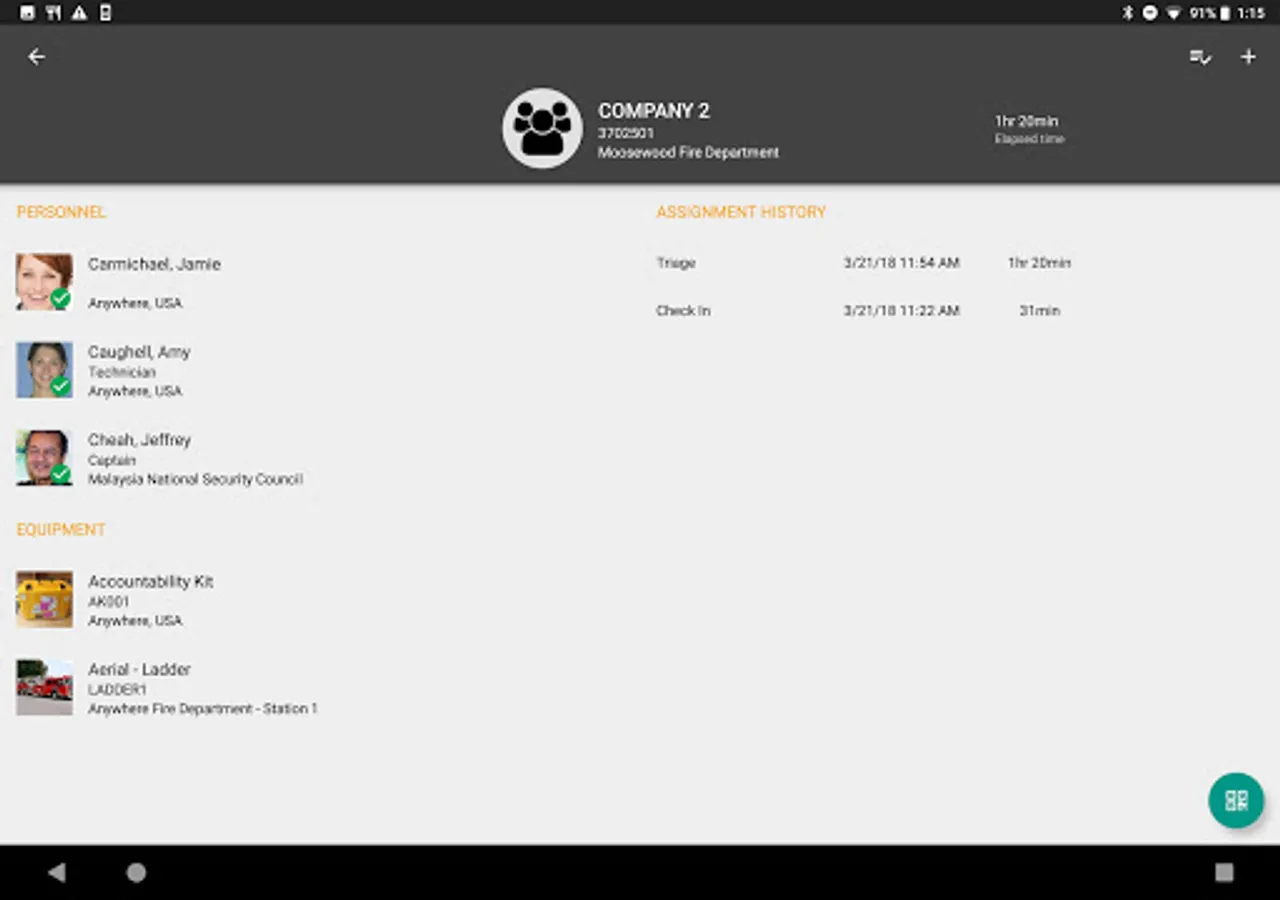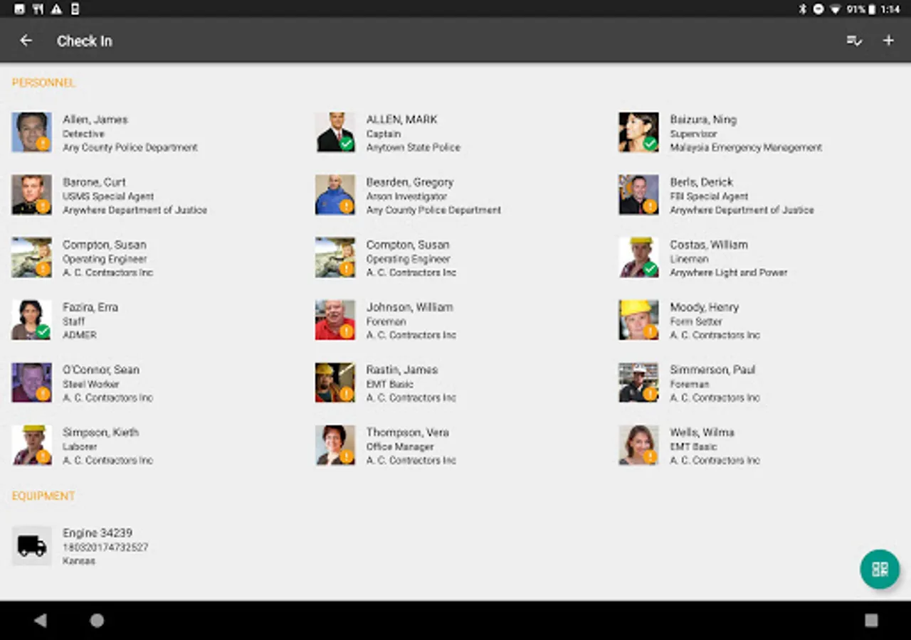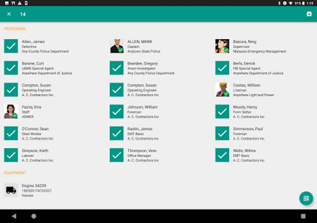 Resource Tracking – Read personnel, equipment, or company tags (PDF417 & QR Codes). Electronically scan or manually place them into assignments and create a date and time stamped history of activity.