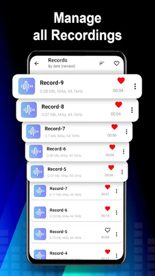 👉Audio manager - Clear audio recording list page, which can be sorted