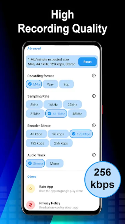 👉Support encoder bit rate from 48kbps to 256kbps for high quality voice recording