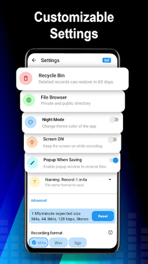 👉Support multiple free voice recording formats: M4A, MP3 and WAV