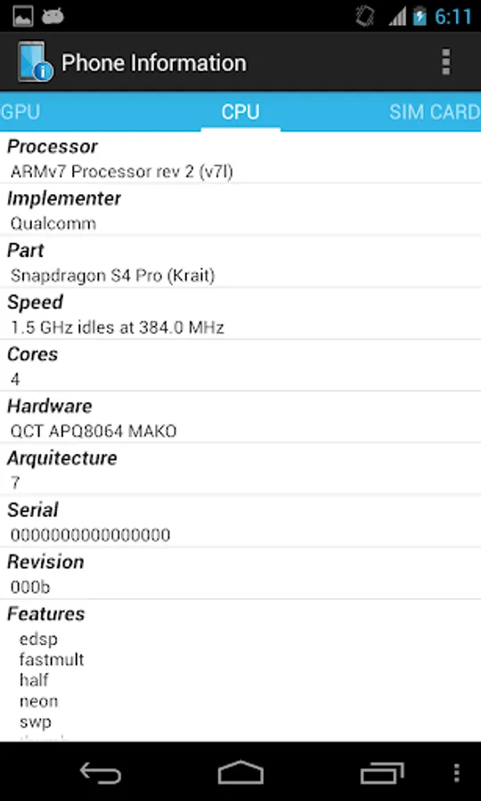 Do you know about your cell phone info? .Phone Information. This application let you see all of your device's internal information in one place, easy and simple. Check your running processes, carrier information, memory usage, sim card,phone cpu, gpu info,hardware and much more!.
