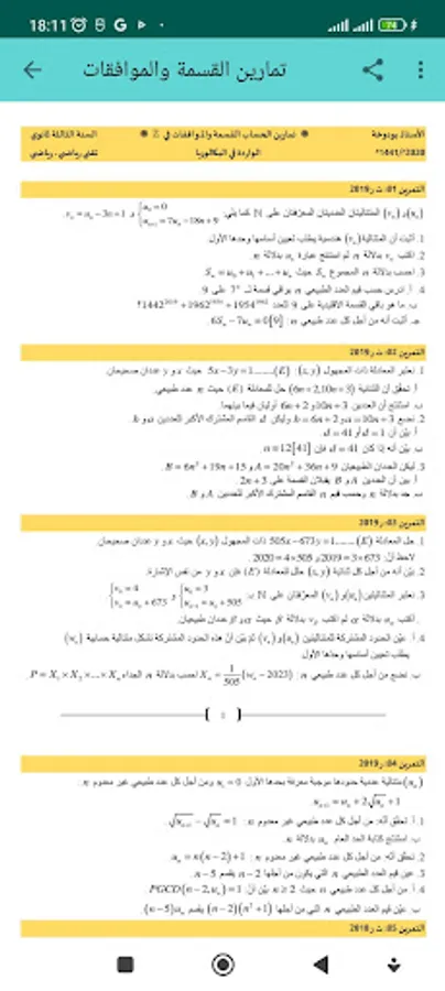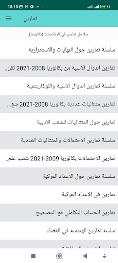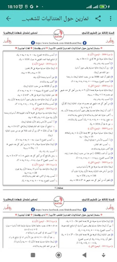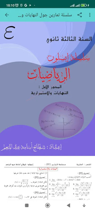 Mathematics Exercise Series (Baccalaureate)The first and second sessions for all subjects and lessons for Baccalaureate According to the new frame of reference for exams.