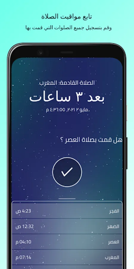 The program can record all the prayers that you performed on time and it saves all the information for you for reference at any time