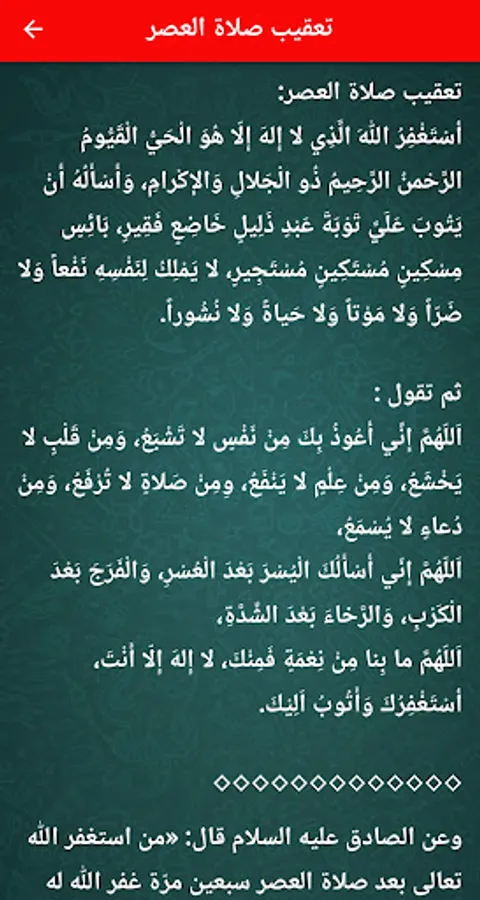 The obligatory daily prayer comments application contains a commentary on the Asr prayer