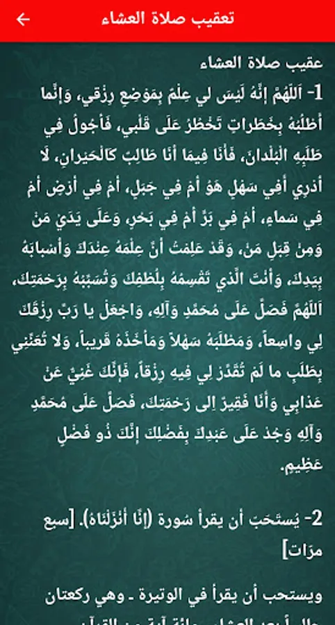 The obligatory daily prayer comments application contains the Isha prayer commentary