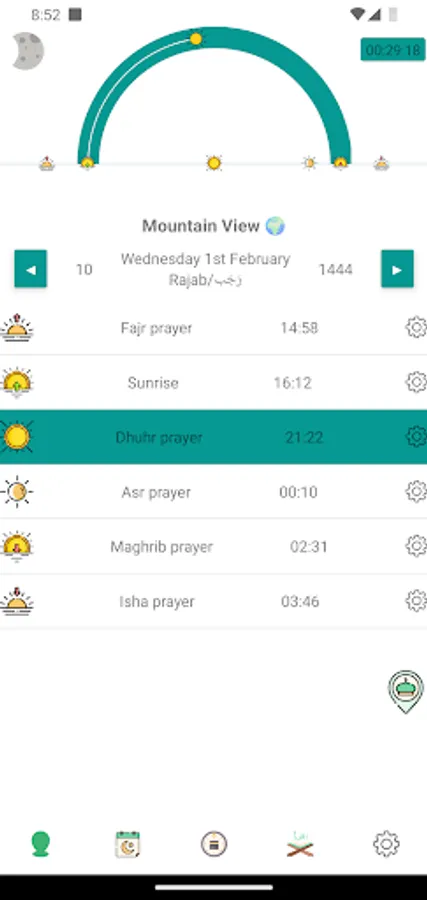 SalatOnTime is an application with the most accurate prayer times. To calculate prayer times two astronomical measures are necessary, the declination of the sun and the difference between clock time and sundial clock. This difference being the result of the eccentricity of the earth’s orbit and the inclination of its axis, it is called the Equation of time. The declination of the sun is the angle between sun’s rays and the equator plan.