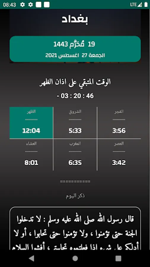 This application does not need the coordinates of your location to a temporary directory of your city account. Prayer Timings Iraq are all available without the expense and does not Net. So through this application