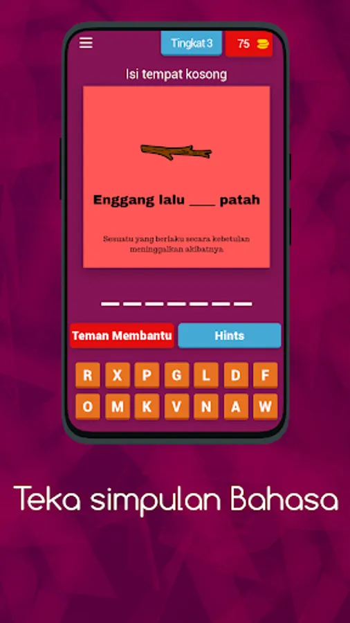 Teka simpulan Bahasa đ adalah game trivia kuis penuh kejutan dengan berbagai macam mode permainan untuk anda mainkan! đšī¸ Kami menantang anda untuk memecahkan misteri dan menguji wawasan anda tentang bahasa Indonesia melalui berbagai mode permainan yang unik dan menarik.