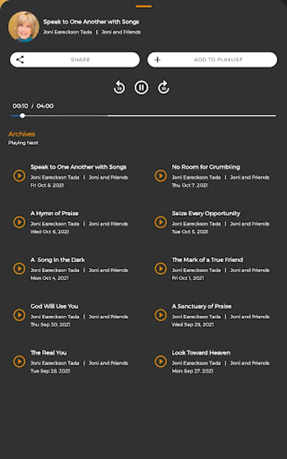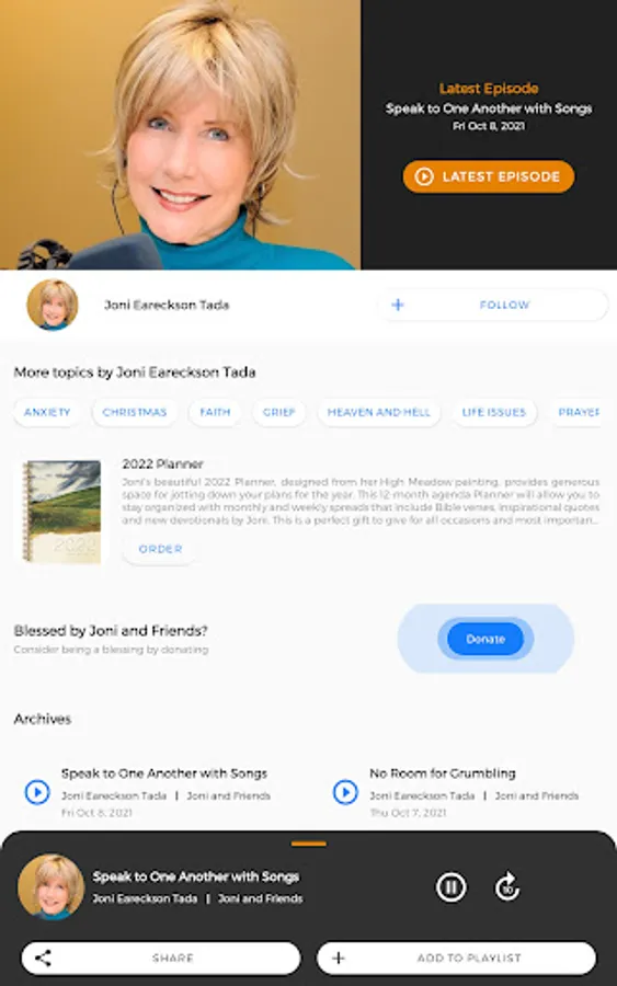 - Share sermons and broadcasts to your friends in Facebook, Twitter, email and more.