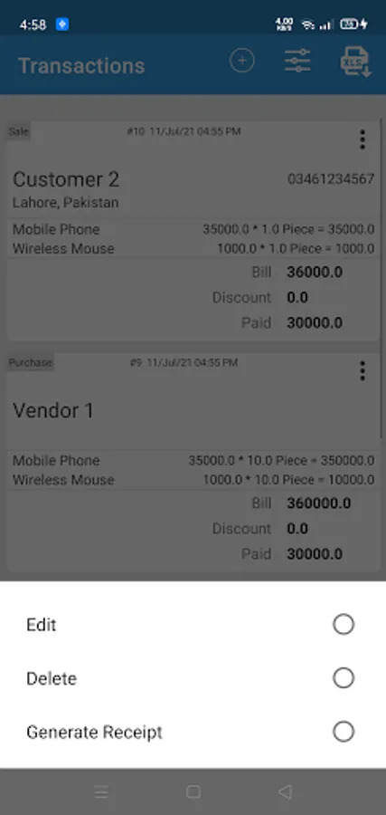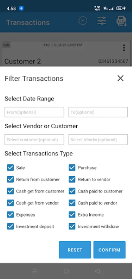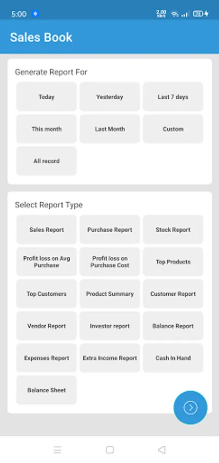 You can generate different reports like Sales, Purchase, Stock, Profit Loss, Customer Ledger, Vendor Ledger, Investor Ledger, Expense, Extra Income, Cash In Hand History