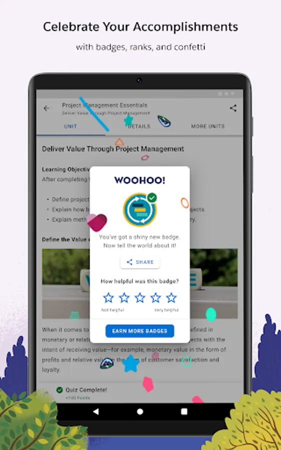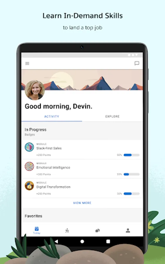Trailhead GO makes learning fun and celebrates your accomplishments. As you learn new skills, you'll be rewarded with points and badges. The more you learn, the higher you will climb up the Trailblazer Ranks.