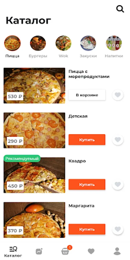 Мы предлагаем пиццу, бургеры, WOK, закуски, морсы и лимонады.