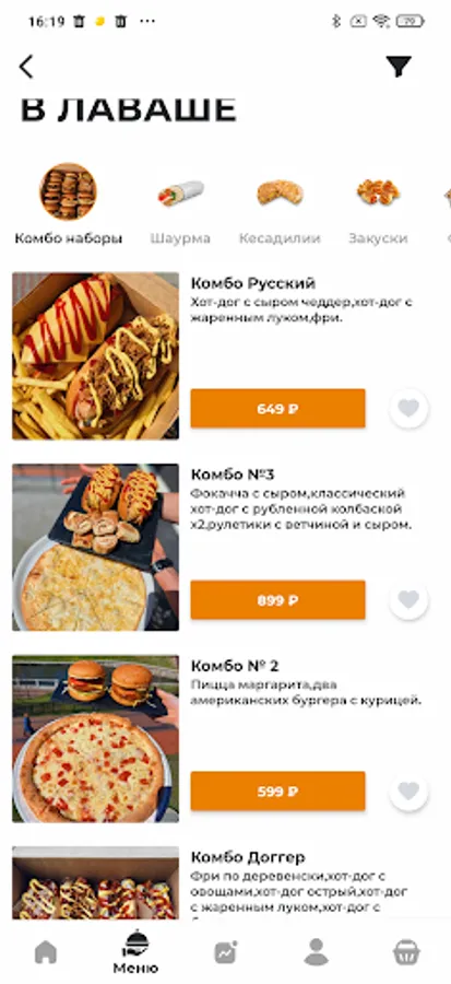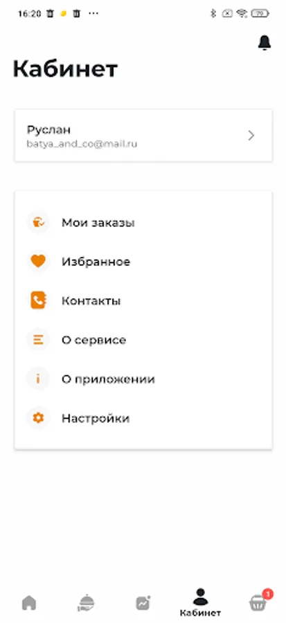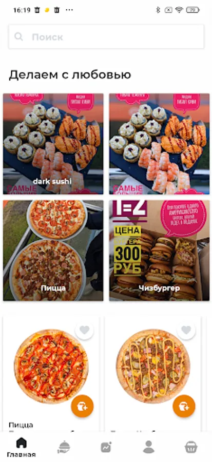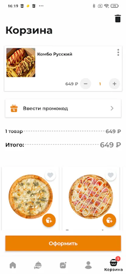 - A personal account is available in the application for viewing the history of orders with the possibility of repeating them;