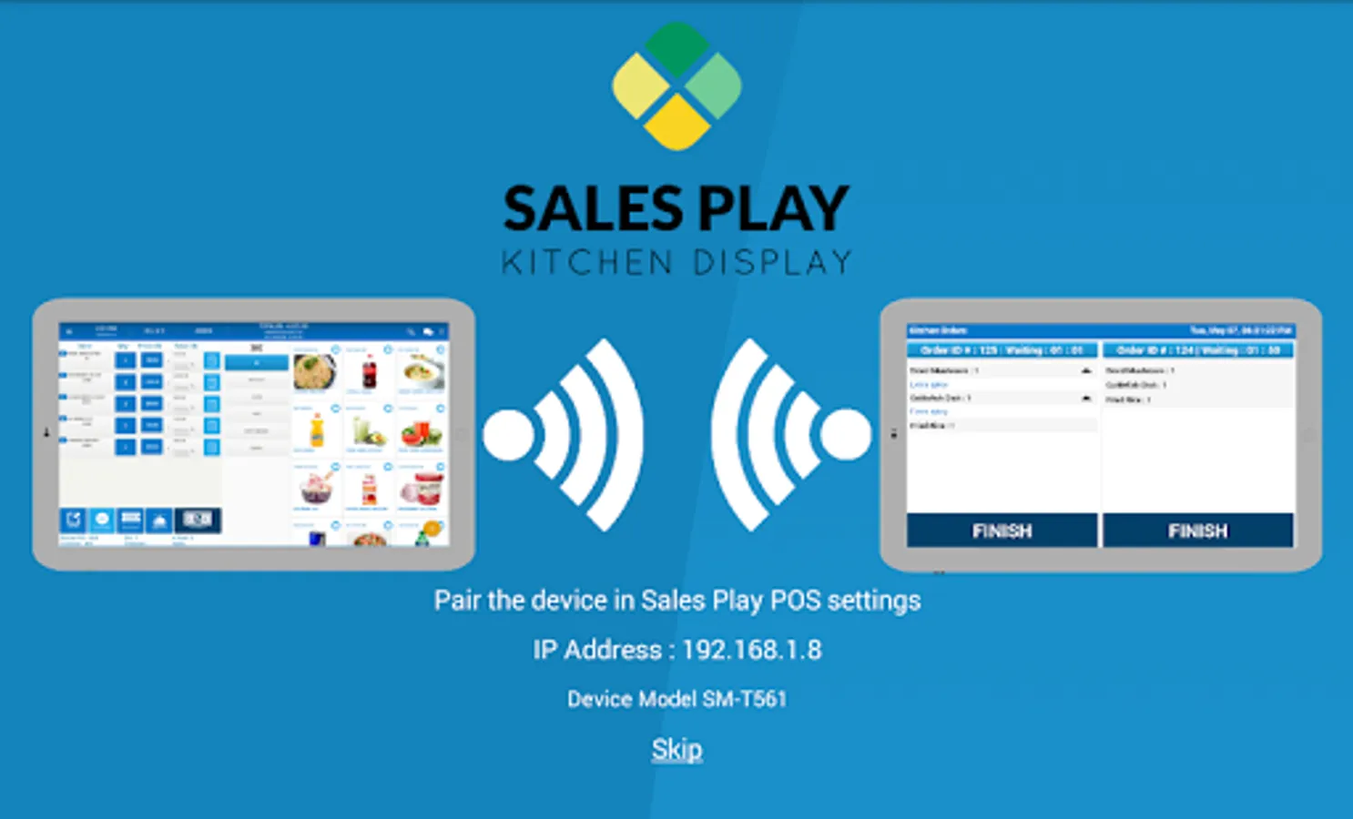 - Connects with the Sales Play Tablet ordering system to get new orders