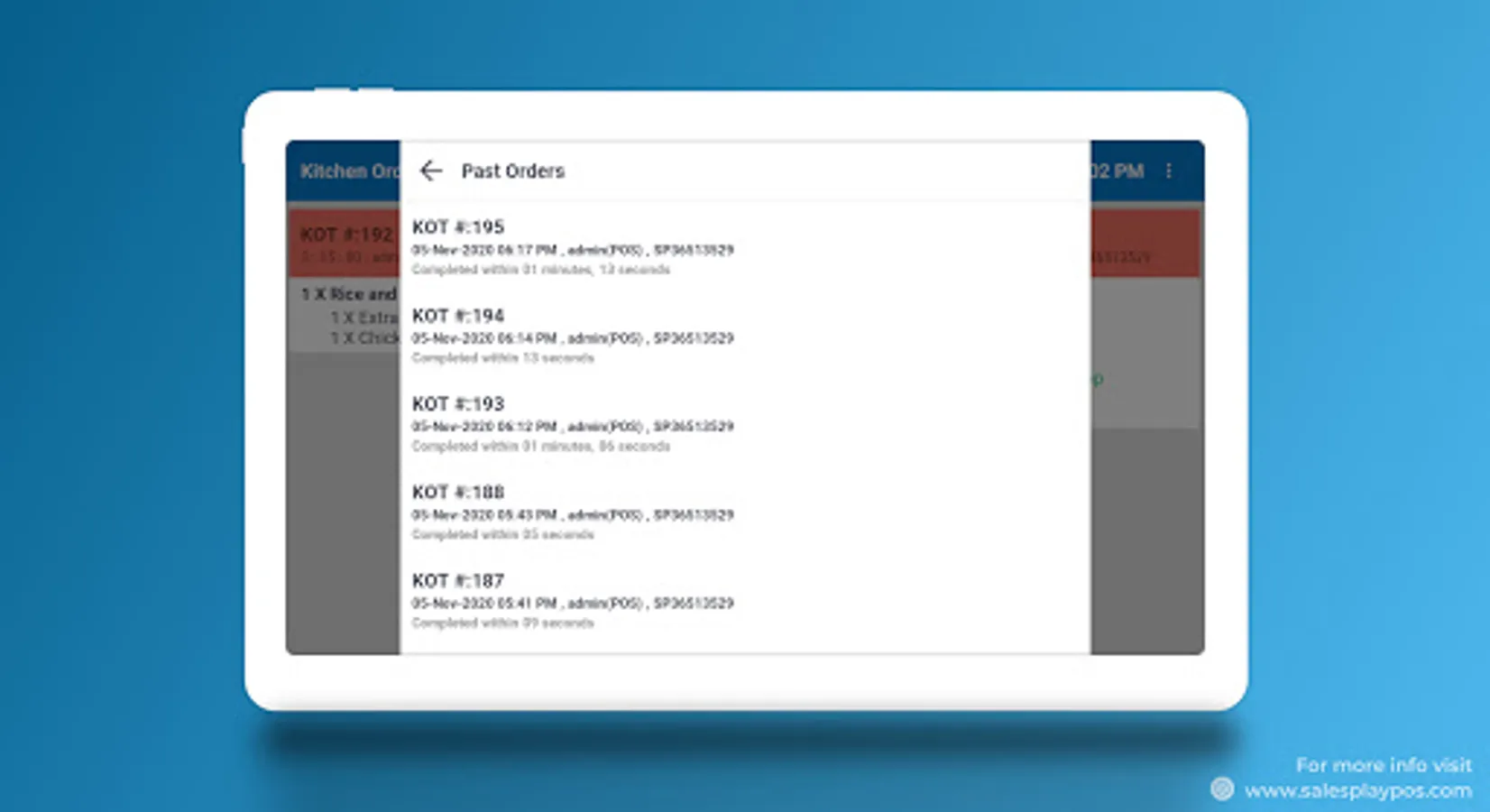 Sales Play Kitchen Display System communicates directly with Sales Play POS and Sales Play Queue management displays and smooth the entire business process.