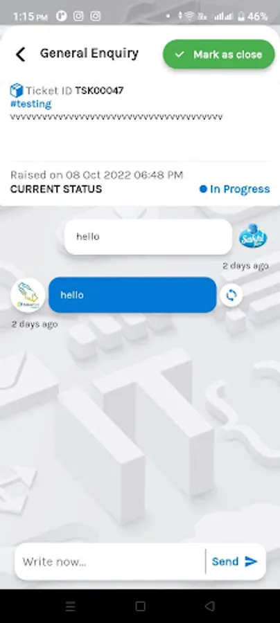 This app for clients of our company to solve their issues in app. Client can raise ticket to solve there problems and get theme resolve.