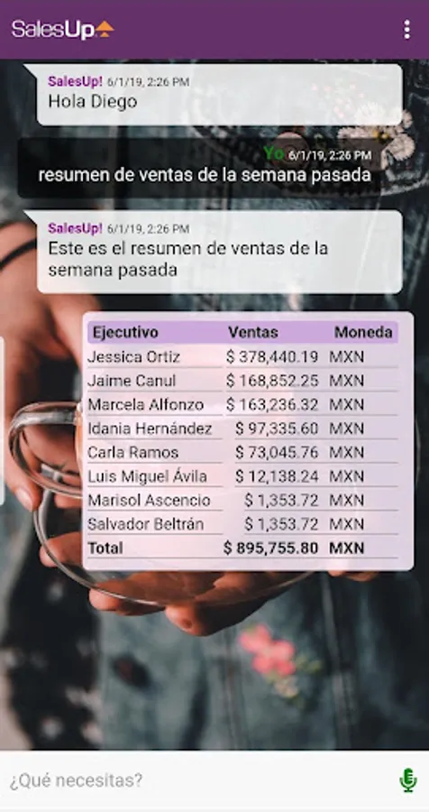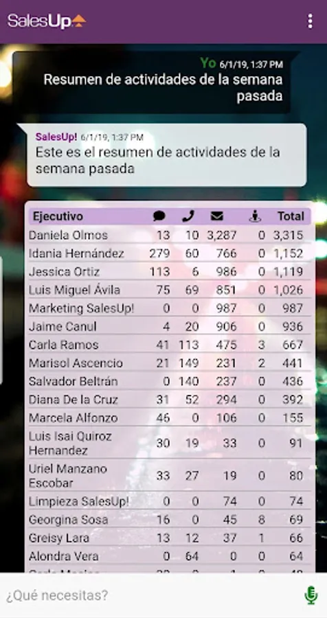 This application allows you to ask to perform CRM operations through chat. Through simple commands, both voice and written, you can get the information you need and in seconds.