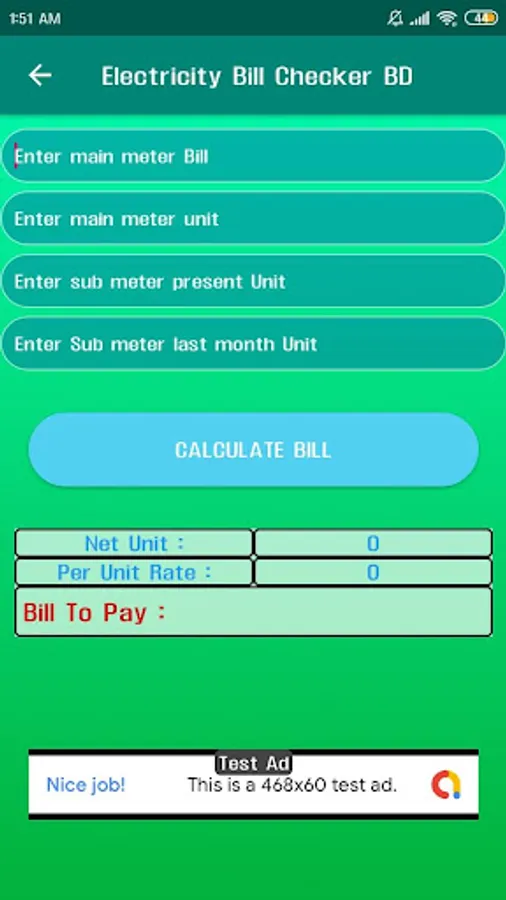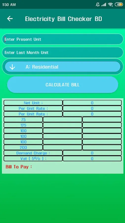 Check or calculate electricity bill without using complex Math. Just enter your last month and present month unit. And get Bill with all information.The app not only shows you the total bill but also indicates in which purpose the bill is calculated.
