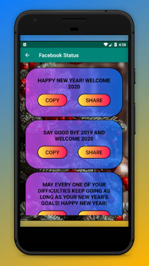 Happy New Year 2020. The Best SMS App for New year 2020. You will get all kind of New Year SMS. Huge collection of new year sms. You will get new year sms for Facebook Status, Family New year 2020 SMS, Friend New Year SMS, For Girl Friend, for Boy Friend.
