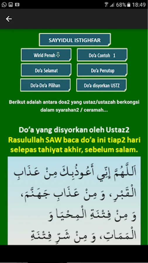We include transliteration, reading in roman / latin is to help rakan2 who are just learning or are not proficient in reading Quran recitation. Keep learning to act in order to read the holy Qur'an with Tajweed more accurate. Applicability Wirid and prayer (prayer) after this prayer is a simple application that we produce as a simple reference to the daily practice after the obligatory prayers. Signs Wirid and prayer (prayer) written is based on a number of brochures and handbooks. Is desperately reminded to read and pray wird (prayer) which is well after the obligatory prayers.