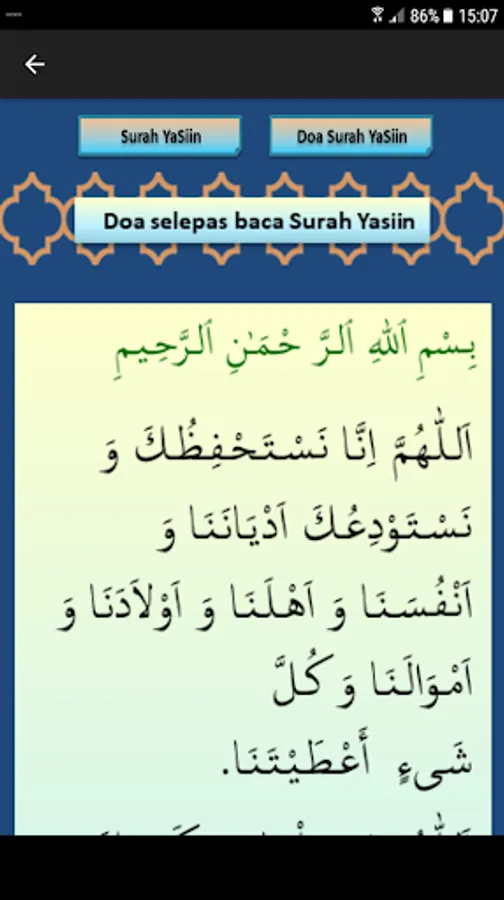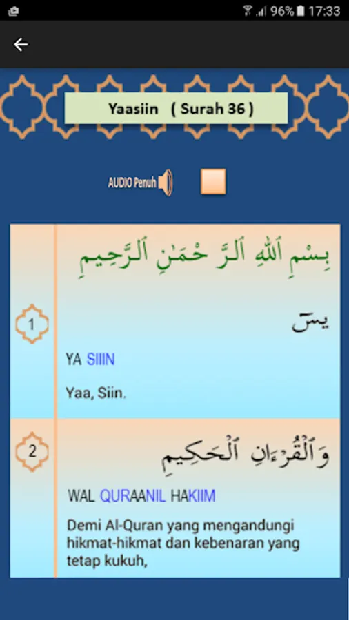 We include transliteration, reading in roman / latin is to help rakan2 who are just learning or are not proficient in reading Quran recitation. Keep learning to act in order to read the holy Qur'an with Tajweed more accurate. Surah Yasin application is a simple application that we produce for easy reference so that we can read this chapter to persevere. The verses of Surah Yasin is based on Al-Quran. We also include the verses in Surah Yasin Rumi spelling (transliteration) for those who need them.