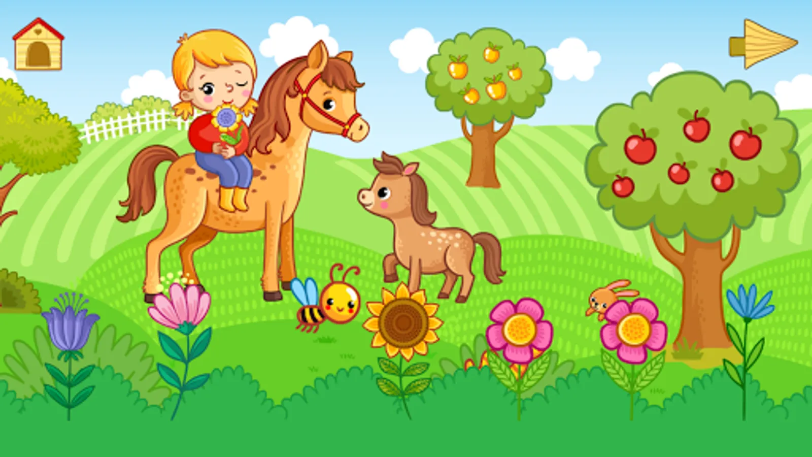 1. Feed the horse and foal, collect flowers for the girl.