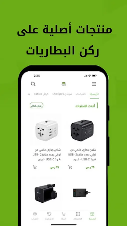A Saudi application for the batteries corner store for electronic commerce in mobile accessories and original electronic devices with the guarantee of the agent where after the customer completes the request, his request is delivered within one to three working days inside Saudi Arabia.