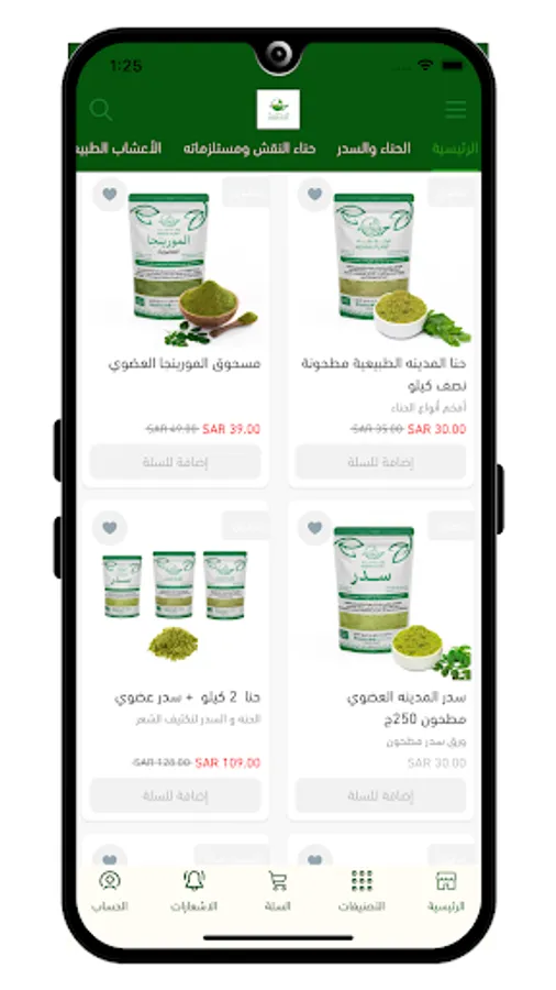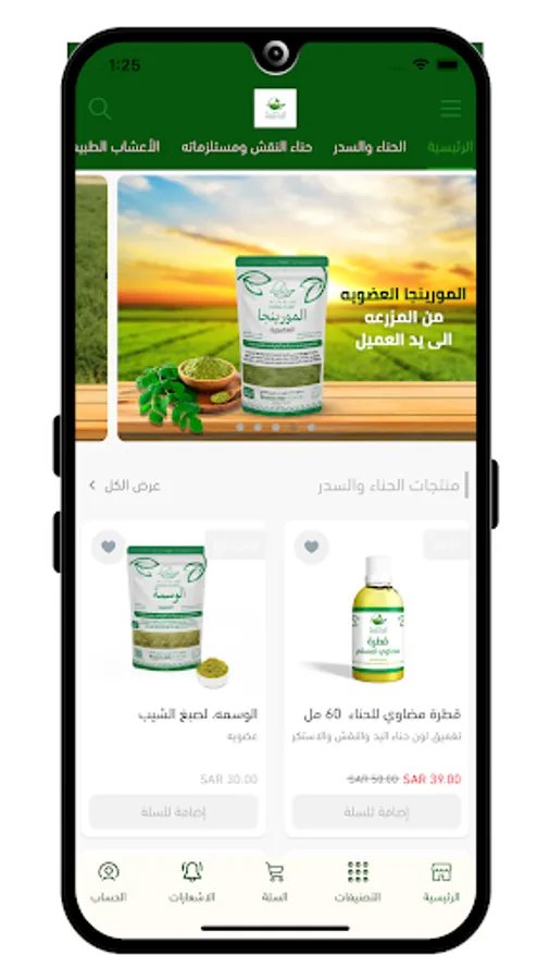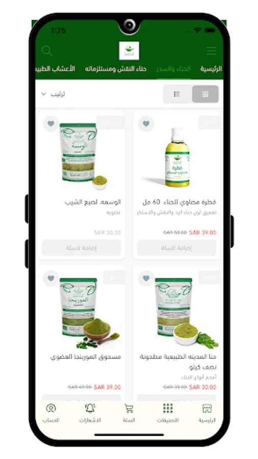 An application that specializes in selling the most luxurious and finest types of natural henna from the farms of Al-Madinah Al-Munawwarah region (Yanbu Al-Nakhl).