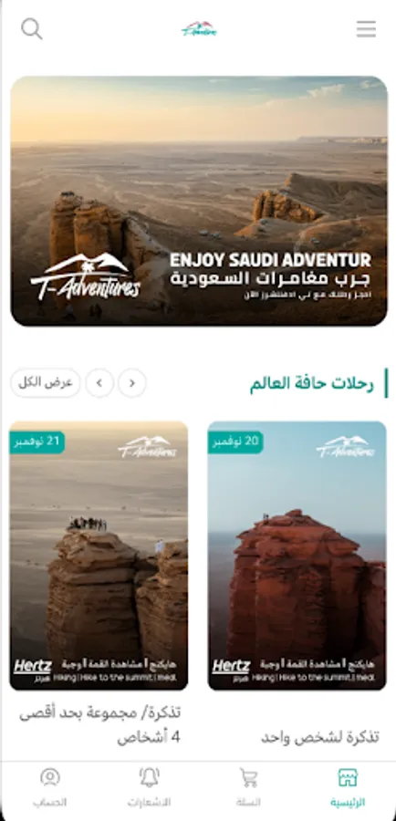 We guarantee you trips with easy reservations, high quality of service, and sweet and exceptional times that you spend in the best tourist destinations in the Kingdom, such as: Al-Ula deserts, Umluj beaches, and a breather at the edge of the world.