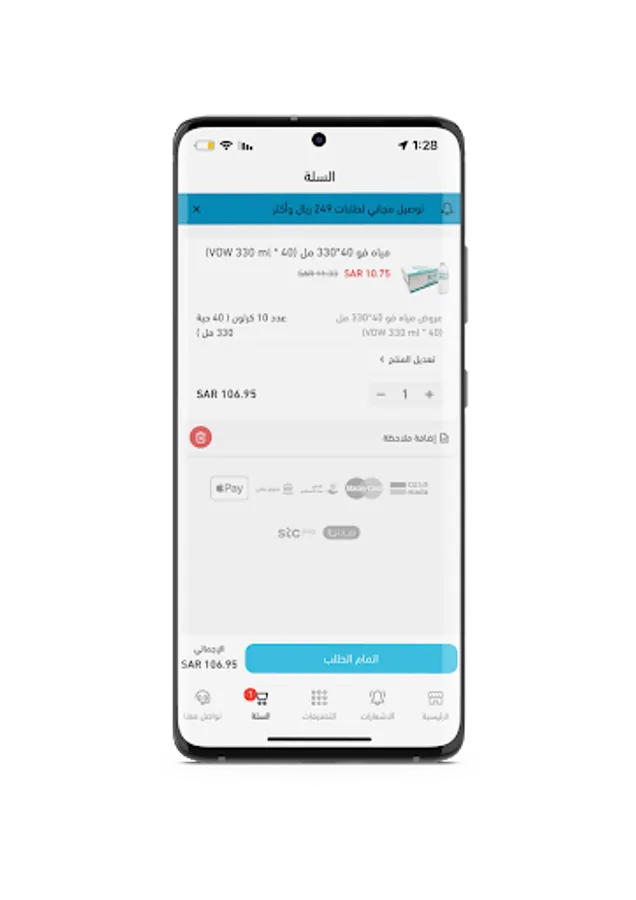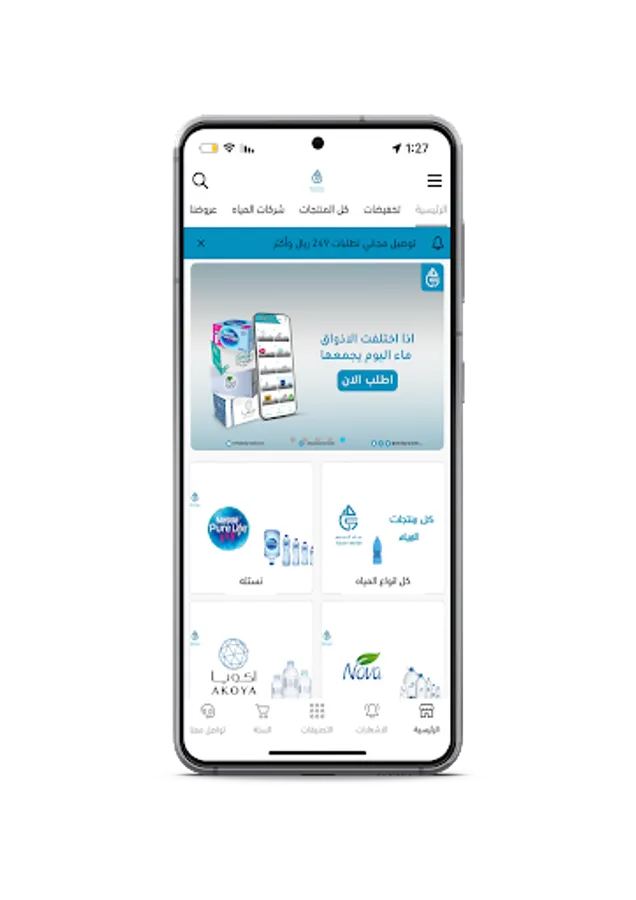Download the water app today now and order all kinds of water from different brands for stores and individual supplies, plastic or glass containers of all sizes and pay using Apple Pay or your preferred method, and it will be delivered to you or your loved one for free in most regions of the Kingdom within four working days. Today's water delivery service covers most regions of the Kingdom Pay using Apple Pay, payment, range or credit card, water volumes available in the application (subject to availability according to the region and production conditions) Order the right type for you, whether glass bottles (sparkling water or normal water) or plastic bottles and sizes Various plastic bottles and sizes available from all water companies: Bottles of 200 ml size: cartons of 24 packages or 48 packages or Shrink 20 packages, packages of 330 ml size: Carton of 40 packages or shrink 12 or 20 packages Water bottles of 600 ml size: carton of 28 packages or Shrink 12 packs 1.5 liter water bottles: carton 12 packs or Shrink 6 packs 2 liter water bottles: carton 9 pack 5 liter water bottles: carton 4 pack 6 liter water bottles: carton 4 pack 12 liter water bottles: carton 2 pack
