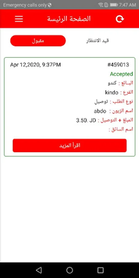 After accepting the order, he goes to the restaurant to receive the order and then goes to the customer to deliver the order
