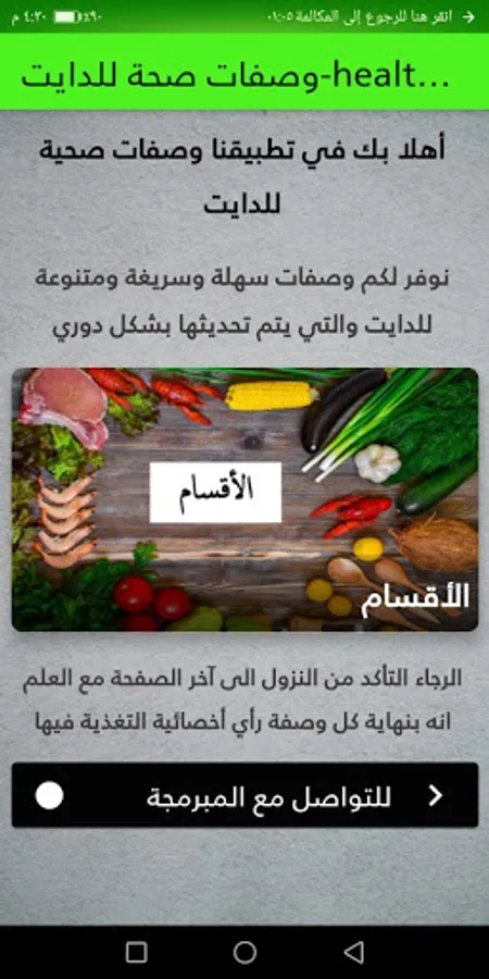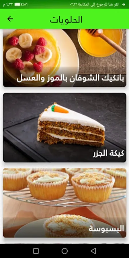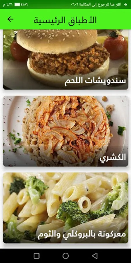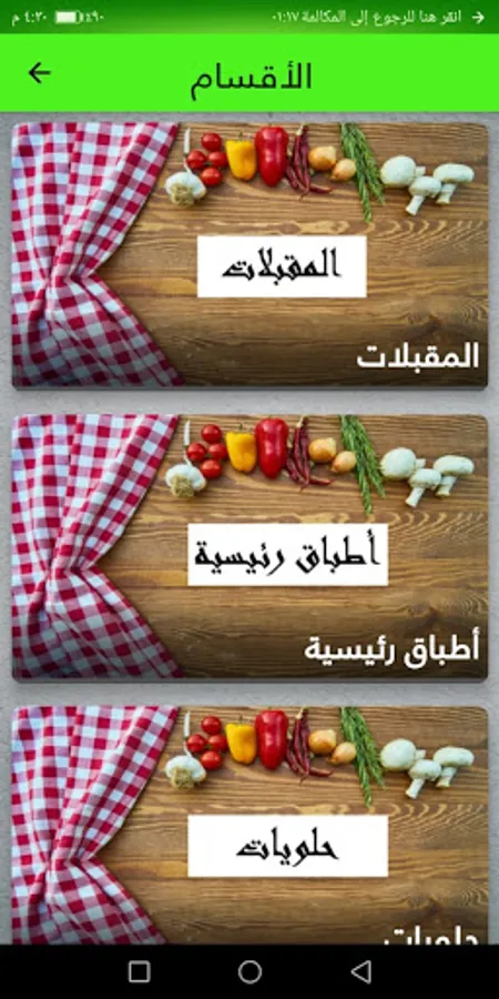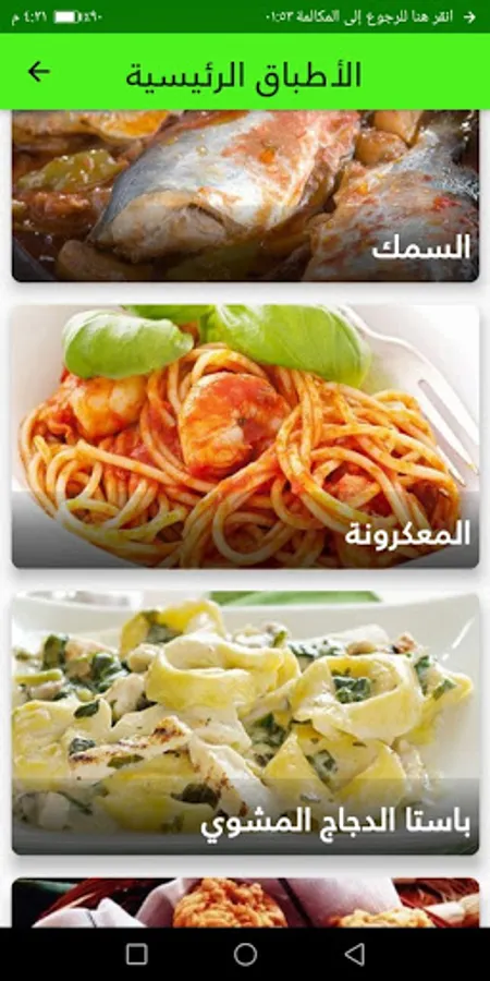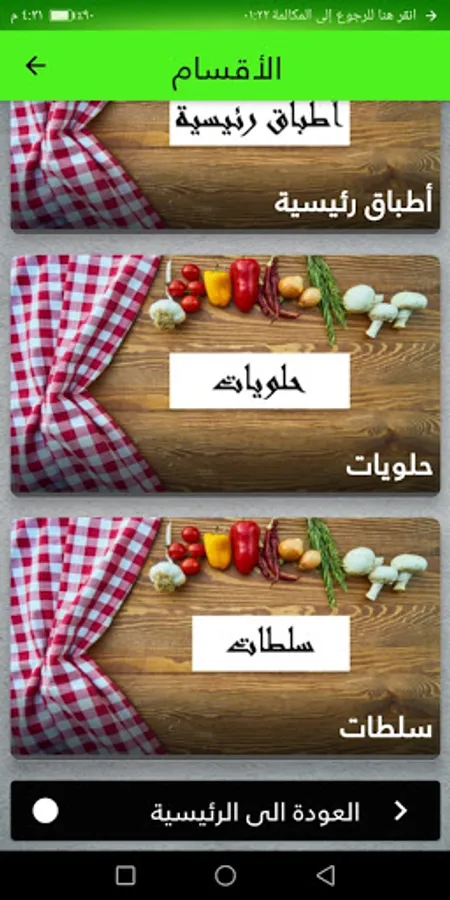 the app has many categories of food such as salad, soup , main meals , desert and many others