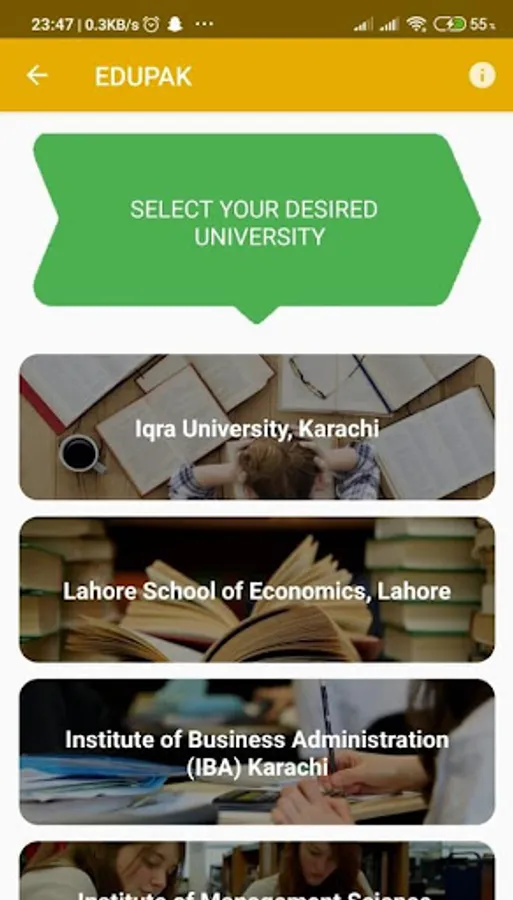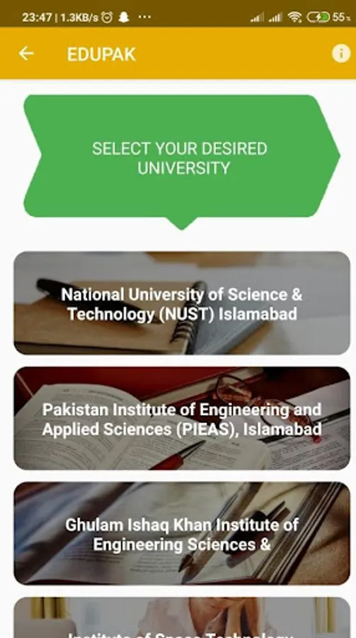 The quality of education in Pakistan is growing day by day in the fields of engineering, medical, business, architecture, agriculture, arts, and many more. Some of the famous universities which are progressing rapidly in these fields are mentioned and described category-wise in this application.