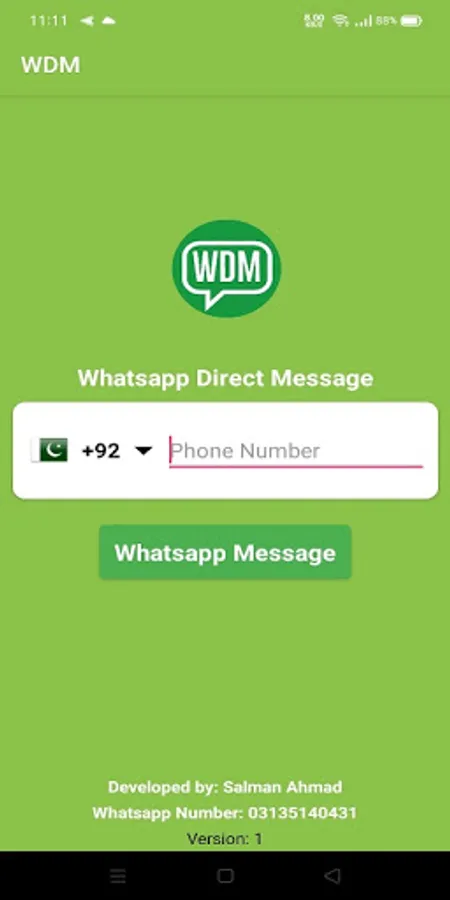 World Direct Message WDM is application used for send message through other messenger without saving any contacts