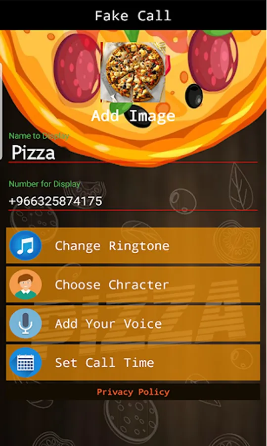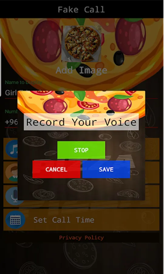 you can schedule a fake call from pizza club and set voice recording and answering call with single click. fake call pizza prank game used to make entertainment and enjoy to make friend fool with fakecall.