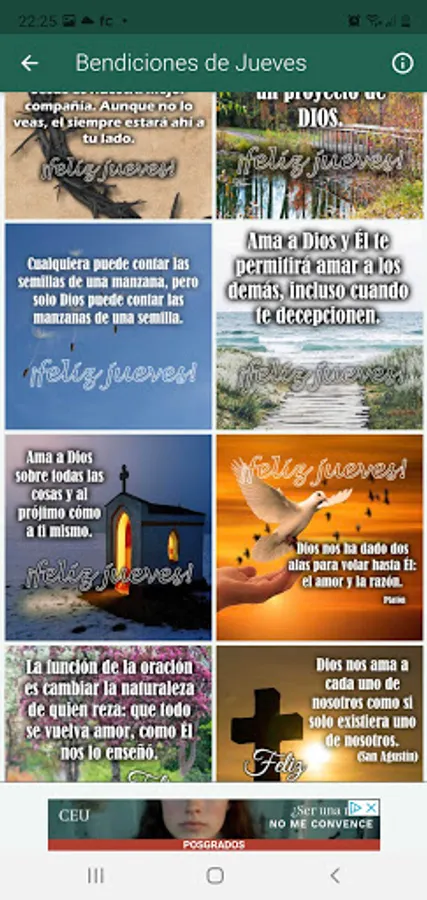 This app contains images of blessings and wise phrases about the love of God and why we must thank him daily for our existence.