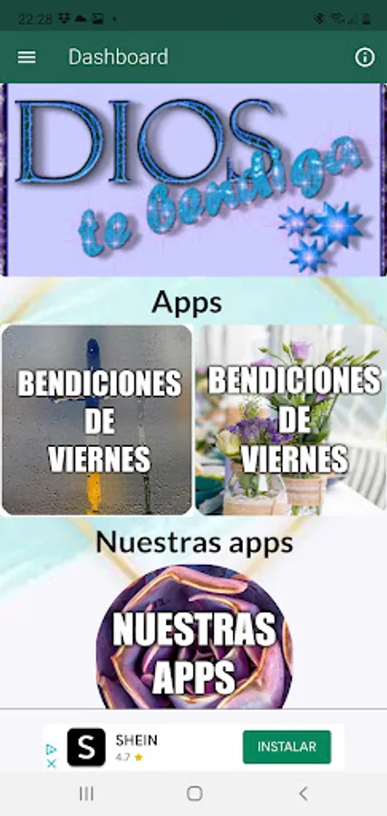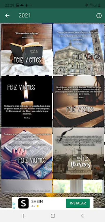 This app contains images of blessings and wise phrases about the love of God and why we have to thank him daily for our existence.