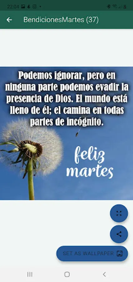 This app contains images of blessings and wise phrases about the love of God and why we must thank him daily for our existence. God is the creator of everything, the one who has always existed and the one who will always exist. He gave us life and for that we must thank him and pray to dario.