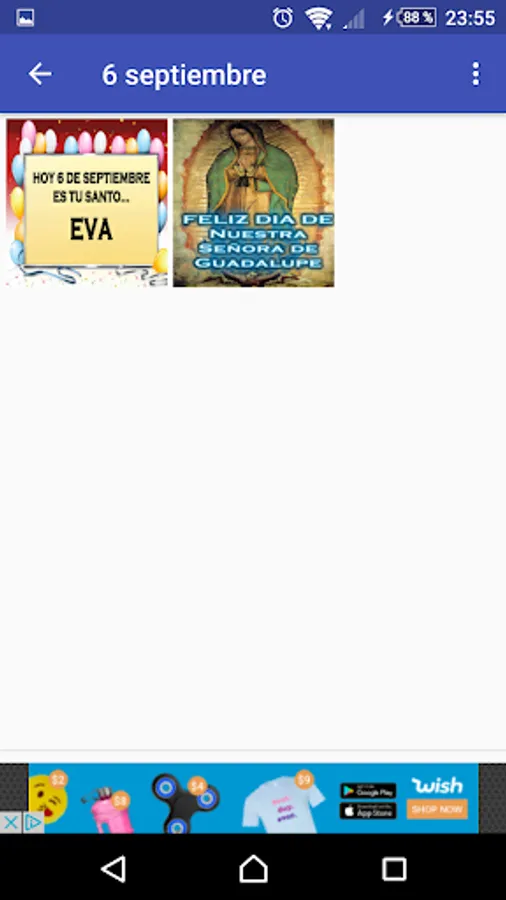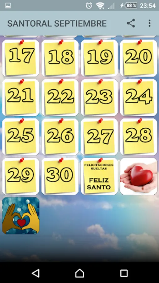 This santoral is made especially for you, so you can know what saint is each day and you can congratulate your friends. If a saint is not found, you have a folder with congratulations from a nameless saint so that you don't miss any.