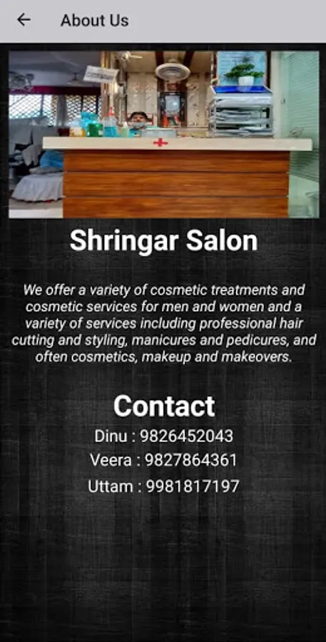 We offer a variety of cosmetic treatments and cosmetic services for men and women and a variety of services including professional hair cutting and styling, manicures and pedicures, and often cosmetics, makeup and makeovers.