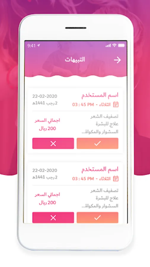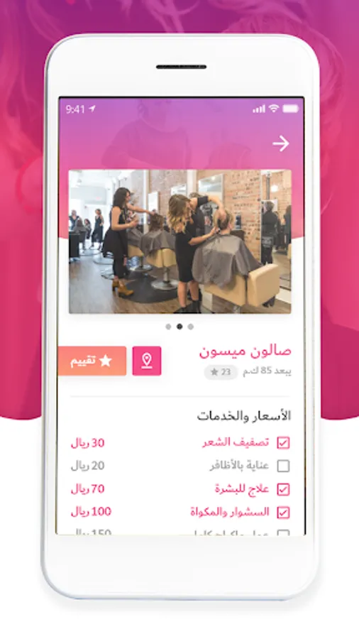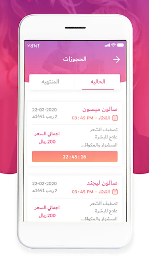 The application facilitates the process of booking salons and searching for the favorite salon or the nearest salon and a reminder of the appointment date for both the client and the owner of the salon.