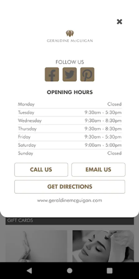 The Geraldine McGuigan Clinic booking app allows clients to log on and make bookings online under their own profile 24/7. Clients can track loyalty points, look at historical and future bookings, and get directions for their favourite beauty salon.