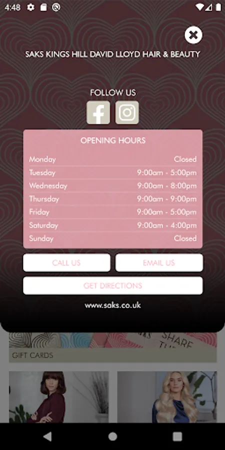 You’ll also find links to saks.co.uk with info on all goss, services and tips on how you can achieve your SPECIAL look. Full salon contact details and opening hours are included in the app