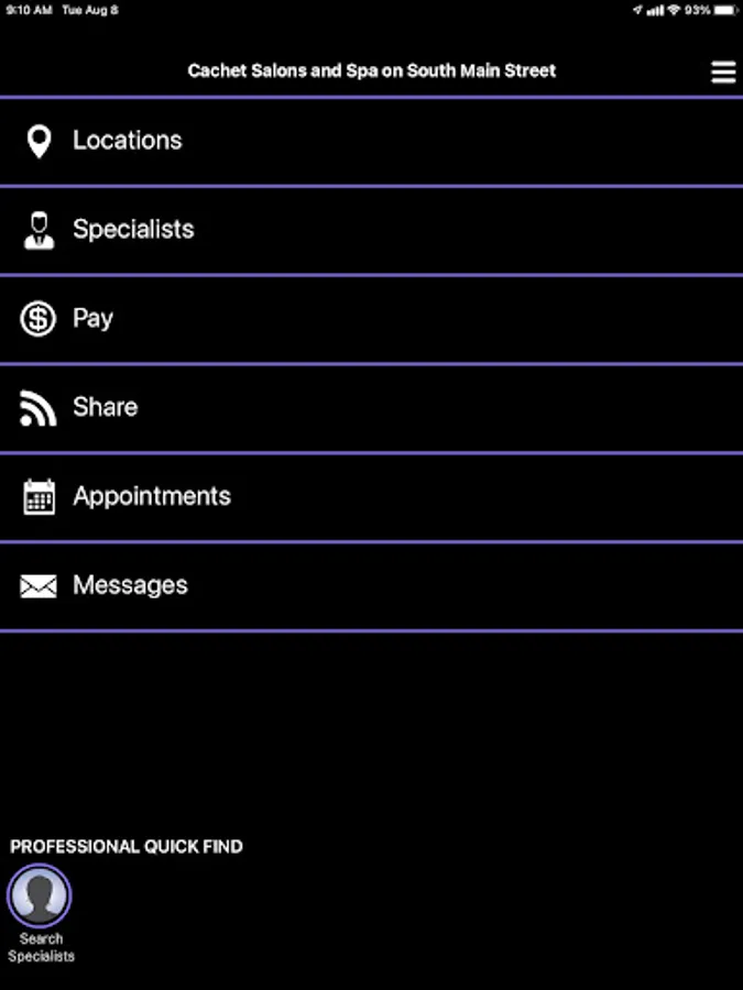 The Cachet Salons & Spa mobile app is for clients of tenant businesses to book appointments, communicate, confirm and pay for hair, nail, and massage services provided by the business owners that reside in a location.