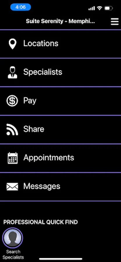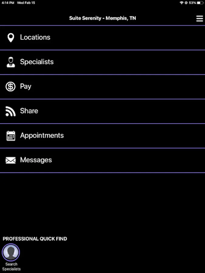 The Suite Serenity mobile app is for clients of tenant businesses to book appointments, communicate, confirm and pay for hair, nail, and massage services provided by the business owners that reside in a location.