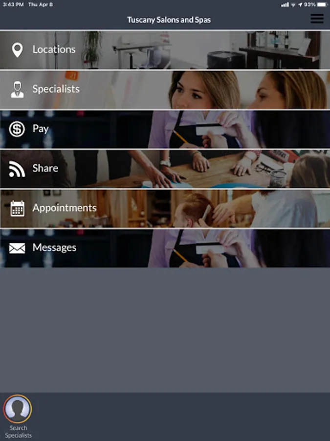 The Tuscany Salons and Spas mobile app is for clients of tenant businesses to book appointments, communicate, confirm and pay for hair, nail, and massage services provided by the business owners that reside in a location.