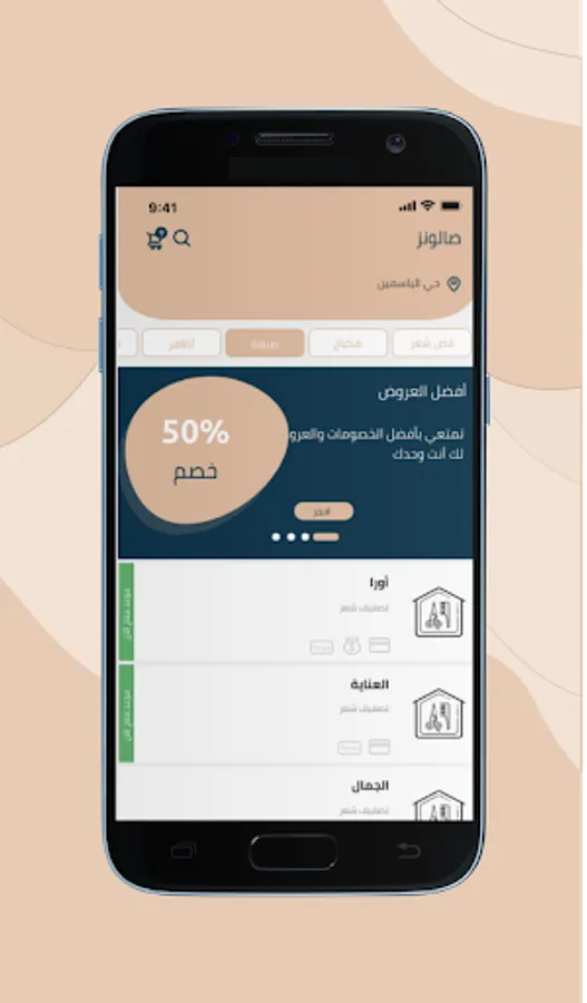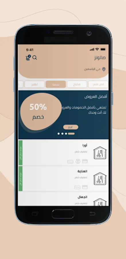 An application that meets your aesthetic needs in partnership with many reliable salons and home services in Saudi Arabia. With Salons, you can choose the salon and the service you need and pay in the way that suits you, all while you are comfortable in your home.
